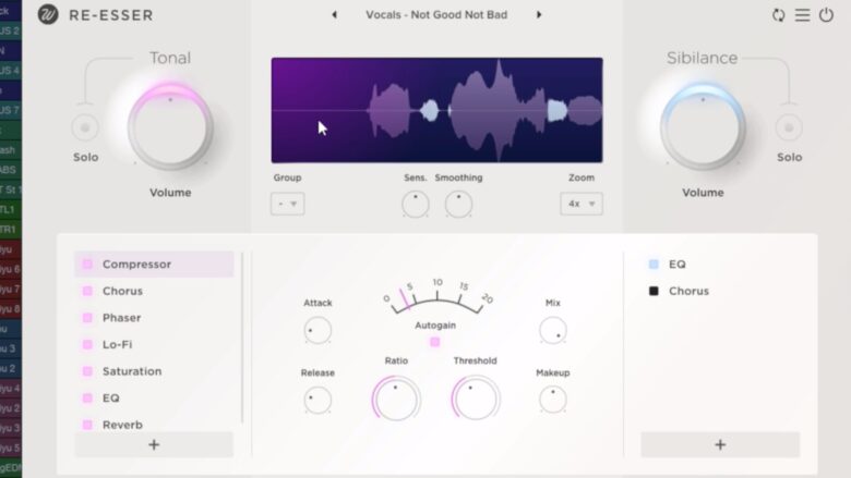 また、16種類の内蔵エフェクト(EQ、コンプ、リバーブ、ディレイなど)をエス音/Tonalそれぞれに適用できるため、“単なるディエッサー以上の音作り”が出来ます。