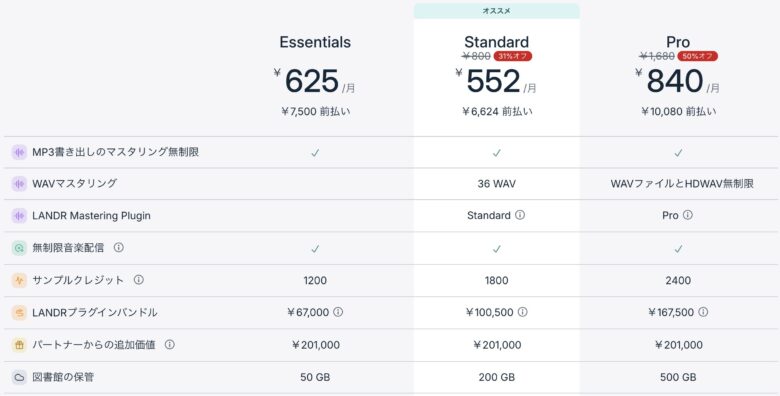 今回お声がけしてもらって提供されたのは「LANDR Mastering Plugin PRO」というプラグインを含めた「LANDR Studio Pro」というサブスクです。
