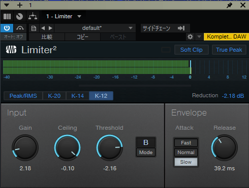 1番目のこちらはStudio One付属のリミッタープラグインを使用しました。