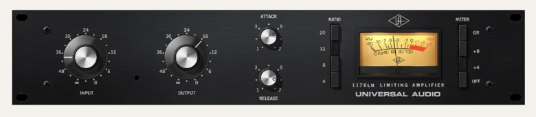 1176はLA-2Aの対極をなすようなコンプレッサーです。超高速アタックと鮮烈な音色で、攻撃的なサウンドメイクが得意です。