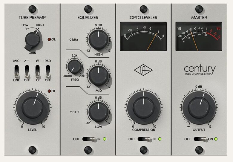 Century Tube Channel Stripは「1つで完結」するスマートなレコーディングチャンネルストリップ。マイク入力→プリアンプ→圧縮→EQの定番フロー全てが詰まっており、シンプルな設計でプロ品質を実現。